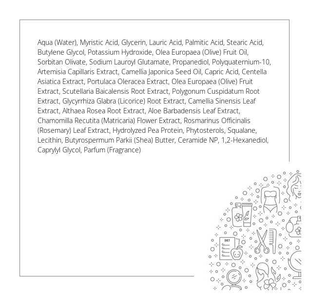 Pianka oczyszczająca została opracowana na bazie naturalnych środków powierzchniowo czynnych pochodzących z oleju palmowego i ekstraktów roślinnych, które łagodnie oczyszczają pory i zanieczyszczenia skóry, jednocześnie utrzymując jej miękkość i nawilżenie. Jego bogata kremowa konsystencja zamienia się w gęstą pianę po spienieniu go wodą, pomagając skórze zminimalizować napięcie. Zawiera wiele składników łagodzących i nawilżających, takich jak olej z nasion kamelii japońskiej, ceramid NP, kwas madekasowy, skwalan i masło shea.