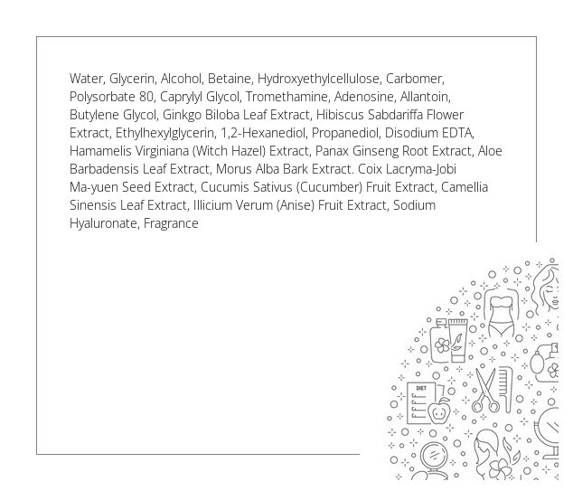 Maska w płacie, zawierająca wyciąg z liści miłorzębu, który regeneruje i wzmacnia naczynia krwionośne, pobudza odnowę komórek, przez co działa odmładzająco i kojąco. W składzie znajdziemy również ekstrakt z kwiatów hibiskusa, który zmiękcza skórę i ją ujędrnia. Do tej maseczki został opracowany specjalny kompleks wyciągów roślinnych, m. in. wyciąg z korzenia żeń-szenia, który intensywnie odżywia skórę, dotlenia jej komórki i wspomaga odbudowę. Zawarty wyciąg z liści aloesu ujędrnia, nawilża i intensywnie odżywia. Morwa biała zapewnia skórze elastyczność hamuje procesy starzenia. Maseczka działa przeciwzapalnie i przeciwbakteryjnie dzięki łzawicy ogrodowej i badianowi.