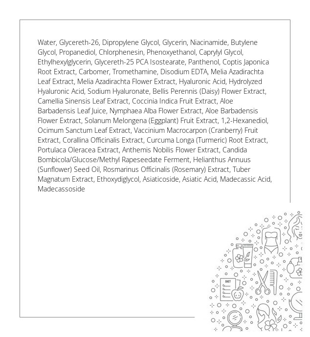 Lekka formuła toniku, która skutecznie koi i nawilża skórę, pozostawiając ją świeżą i promienną. Zawartość wąkroty azjatyckiej oraz aloesu działa łagodząco na skórę, redukując zaczerwienienia i podrażnienia, jednocześnie nawilżając i wspomagając regenerację. Niacynamid pomaga poprawić koloryt skóry, rozjaśniając przebarwienia i wyrównując jej teksturę. Dzięki zastosowaniu kwasu hialuronowego tonik intensywnie nawilża, pozostawiając skórę gładką i pełną blasku. Naturalne ekstrakty roślinne, takie jak ekstrakt z kwiatów stokrotki, róży, czy melisy indyjskiej, wykazują działanie przeciwzapalne oraz wspierają ochronę skóry przed szkodliwymi czynnikami zewnętrznymi. Tonik zawiera również antyoksydacyjne ekstrakty z zielonej herbaty, żurawiny oraz kurkumy, które poprawiają kondycję skóry i przywracają jej zdrowy wygląd. Tonik idealnie nadaje się do skóry wrażliwej, odwodnionej, a także w przypadku nierównomiernego kolorytu cery.