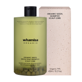 Szampon WHAMISA Organic Seeds Green Peas Shampoo Scalp Care został stworzony z myślą o delikatnym, ale skutecznym oczyszczaniu skóry głowy oraz wzmacnianiu włosów od nasady po same końce. Jego wegańska, certyfikowana formuła oparta jest na organicznym ekstrakcie z zielonego groszku, nasionach jęczmienia, komosie ryżowej oraz fermentowanych wyciągach roślinnych, które dostarczają witamin, minerałów i antyoksydantów. Dzięki procesowi fermentacji składniki są lepiej przyswajane przez skórę, co wspiera jej naturalną równowagę, łagodzi podrażnienia i redukuje nadmierne przetłuszczanie. Szampon delikatnie się pieni, pozostawiając uczucie świeżości i lekkości bez efektu przesuszenia.
